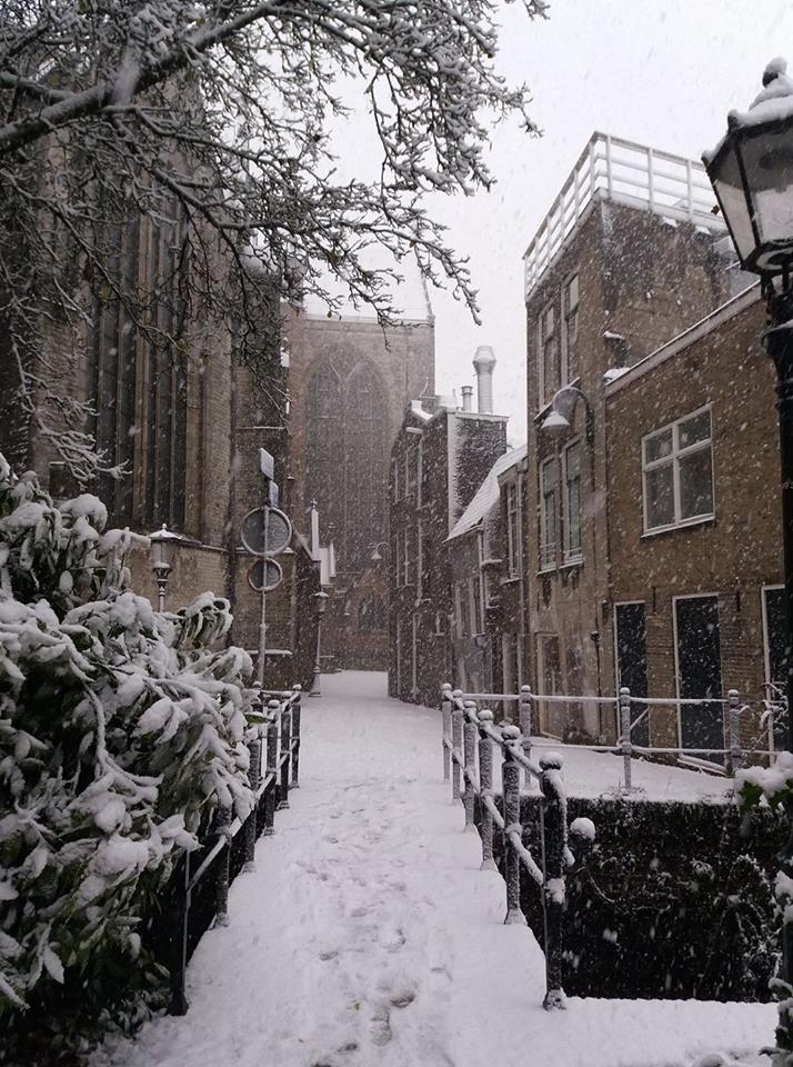 Ze loopt achter de Sint-Jan en het sneeuwt. Alles is wit. Bij de steenhouwer staan stapels ondergesneeuwde stenen. De leuningen aan de brug naar het Catharina Gasthuis hebben een dikke muts op. Langs de muren van de Sint-Jan liggen hopen sneeuw. Een van die hopen beweegt. Liza loopt er voorzichtig naartoe. Ze veegt wat sneeuw aan de kant. Dan ineens ziet ze een stuk van een gezicht dat blauw is van de kou. Een klein oranje randje van een kerstmuts komt ook onder de sneeuw vandaan. Liza graait in de hoop sneeuw, pakt een arm en schudt eraan.